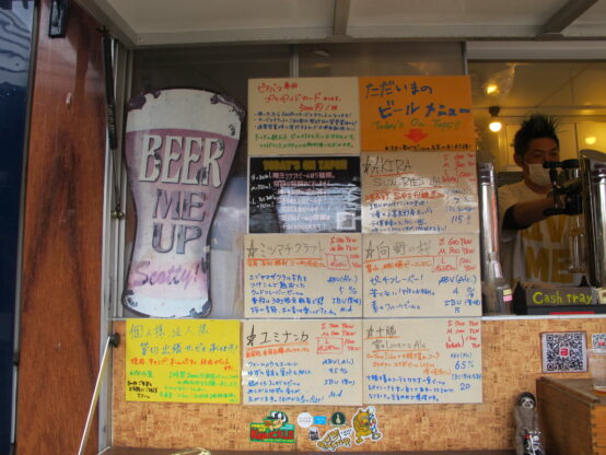 ビールのメニューはその時によって変わります。又、樽が無くなったら、別のビールが開栓されます。ビールはプラカップで提供され、サイズも選べます。