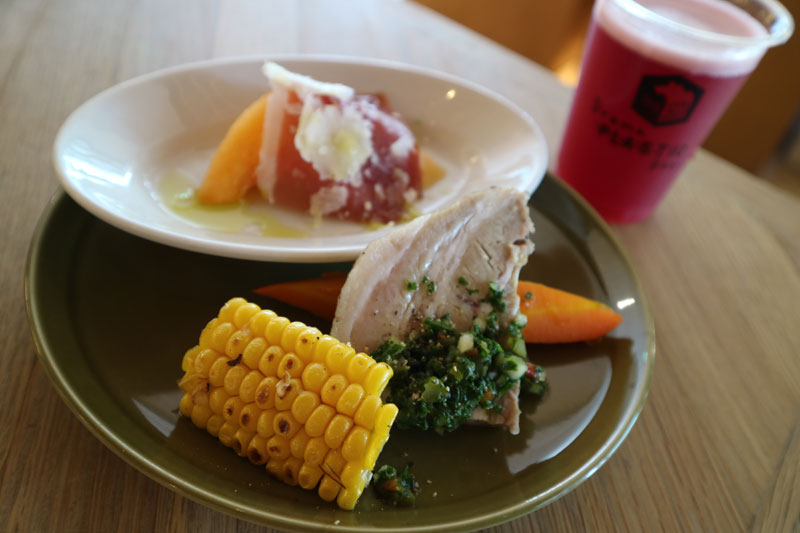 「北海道 夢民豚バラ肉のボリート サルサヴェルデ」と「北海道メロン、生ハムのラスバドゥーラチーズ添え」。ハスカップの酸味が、料理それぞれの味わいを引き立てる役割に。また、上記2品に加え、北海道の食材を使ったメニューも展開しています。