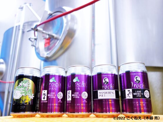 「おろち」は、2012年から発売している数量限定ビールで、島根県の酒蔵を毎回変えながらコラボレーションしているビールである。きっかけは、日本酒造りにあこがれを持つ矢野さんが「誰もやったことがないビールを造りたかった」思いから生まれた。2019年まではお神酒ビールとして楽しんでほしい思いから年末に発売していたが、2020年と2021年は春にも発売。現在は年2回発売している。