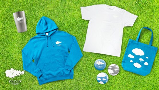 また、ファイターズフラッグシップストアではグッズも販売します。北海道の開放的な空と緑鮮やかな天然芝のイメージから着想した「そらとしば」のロゴが描かれたTシャツやパーカー、トートバックなどのアイテムがあります。