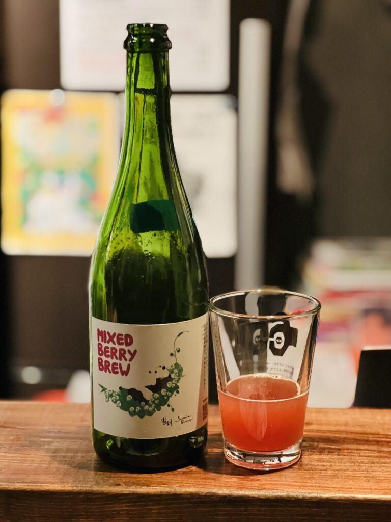 3杯目は、坂巻さんのおすすめビールで、Tobetsu Seven’s BrewingのMIXED BERRY BREWです。ミックスベリーピューレ、ライムジャム、ライムピール、エルダーフラワー、カモミール等を使用したフルーツビール。