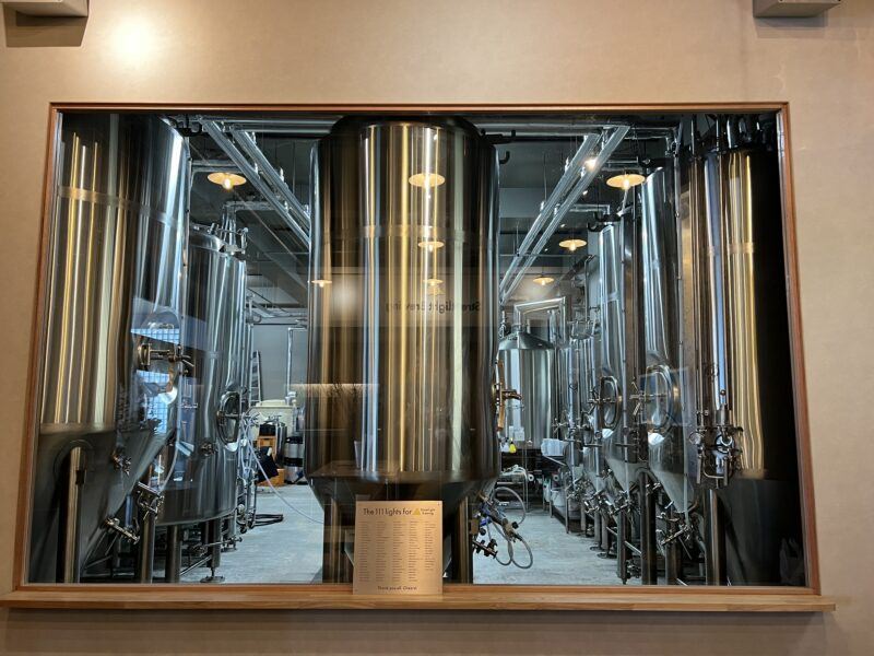 店内の窓からブルワリー内の様子が見られる構造になっている