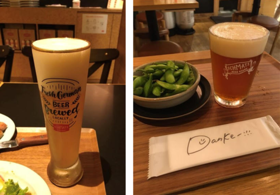 シュマッツのレストランでは自社ビールを中心に様々なビールを提供しています。