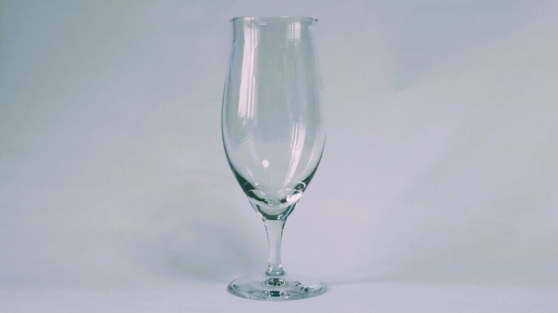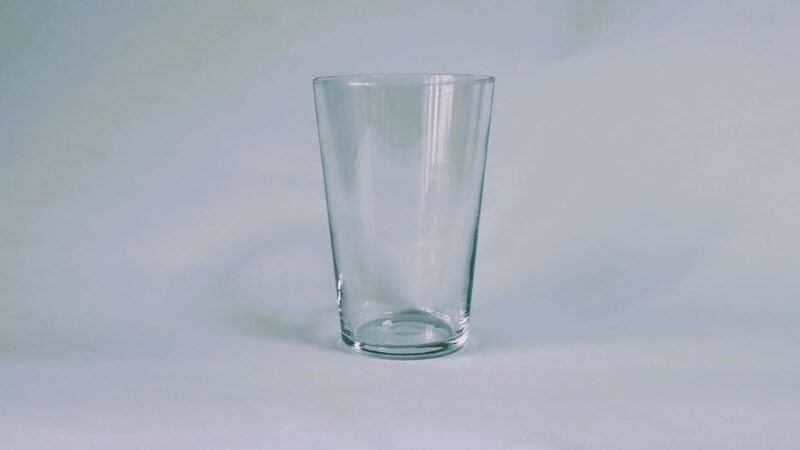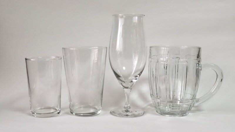 最初は、商品名「ビールグラス (約400ml)」です。薄めのガラスで、口が広がったシンプルな形状。タップ数が多いビアバーで使われてそうな、汎用性の高いグラスです。