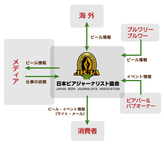 活動内容 活動趣旨・目的 ビールの広く深い愉しさを伝えていく 試飲して「感応」を書く練習を通じ、ビアジャーナリストを育てる機関に メディアが聞けば、ビールのことが分かるという存在 活動内容 WEBサイト・SNS・YouTube・Podcast等を通した情報発信 →ビール愛好家、原料生産者、ブルワリー、ブルワー、料飲店・飲食店へ インポーター、メーカーからいただいた新製品情報の紹介 ビアパブをはじめとするお店の紹介 イベント情報 ビール業界の求人情報提供 ビアジャーナリストアカデミーの運営 日本産ホップの推進活動 フレッシュホップフェストの企画サポート メディア出演の依頼、その他出版・原稿執筆・講演・タイアップ企画等々