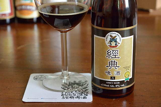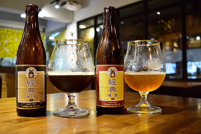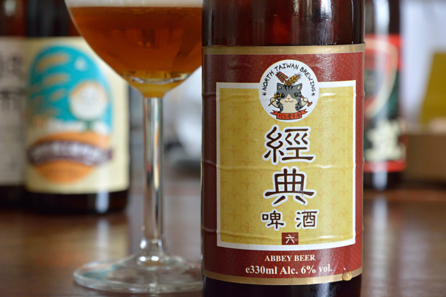 まずはベルジャン・スタイルのアビービール、「經典(八)」。余談だが、「經典」はいわゆる仏教の経典ではなく、「クラシック」という意味。こちらはアルコール度数8%。しっかりとしたモルトと、アビービールらしい複雑でスパイシーなフレーバー魅力的。スパイスは使っていないらしいので、ベルジャン酵母に由来していると思われる。このビールは金賞を受賞している。