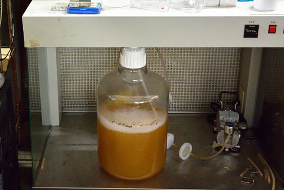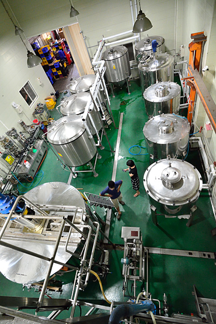 話を伺った後は、醸造責任者の段淵傑さんの案内でブルワリーの中へ。衛生的な環境の中で近代的な設備が稼働していたのが印象的で、工場内には酵母の培養室もあり、酵母の管理もなされていた。