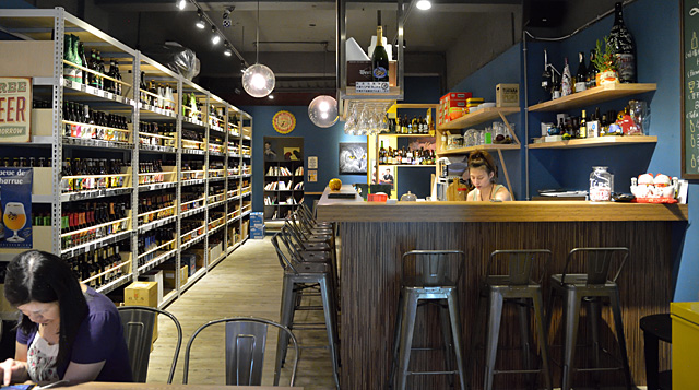 まずは、MRT台北小巨蛋駅から5分ほどの、いわゆる角打ちできるボトルビールショップ、「家途中啤酒屋 (Way Home Beer House)」 に行ってみた。店名の通り、「家に帰る途中にちょっと寄って飲む」というコンセプトの店だ。こちらでは、冷蔵庫で気持ちよく冷えたビールを軽食とともに楽しむことができるのだが、残念ながらドラフトビールは置いていない。ラインナップとしては海外のビールが目立つが、棚の一角はしっかり北台湾ビールが占めていた。
