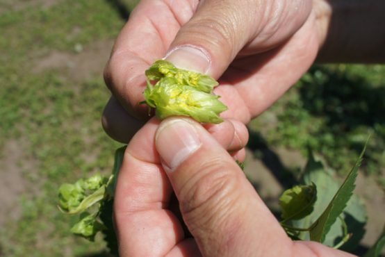 ホップの圃場で育つ「ソラチエース」の生の香りは…?