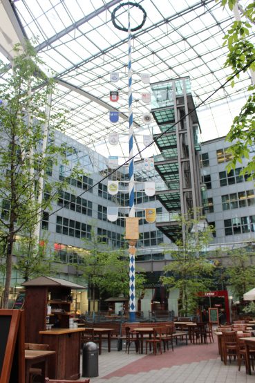青と白のポール(マイバウム)が立ち、こんなに素敵なビアガーデン。