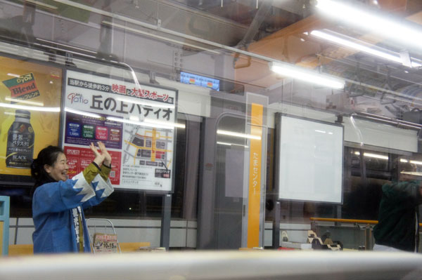 楽しかった停車時間も終わり、折り返して最終の高幡不動駅へ向かいます。多摩センター駅のホームから名残惜しいお見送り…。
