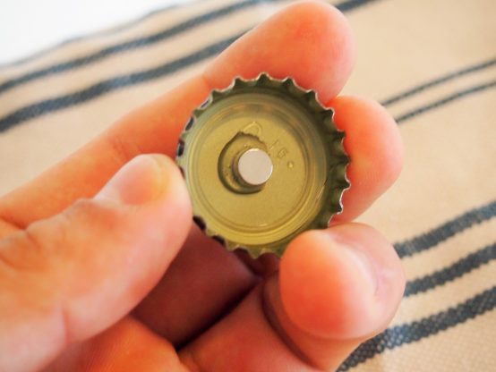 下準備は、保存したい王冠に接着剤で磁石をくっつけるだけ。以上。
