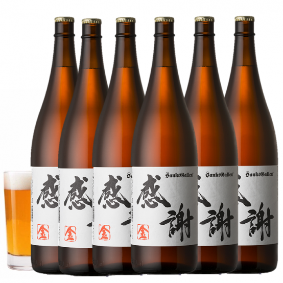 ストレートに気持ちが伝わる「感謝」の一升瓶ビールは6本で15,600円。