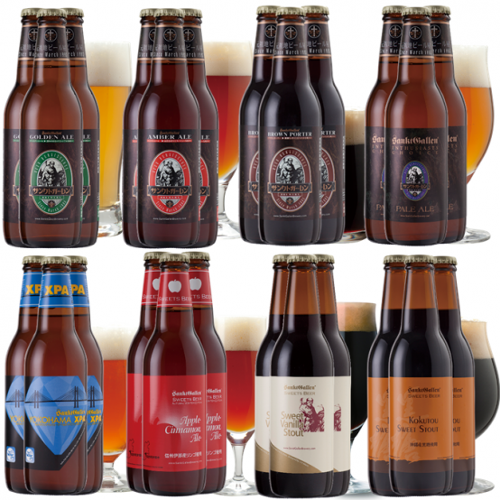 8種類の違う味のクラフトビールを各3本ずつ詰め合わせた24本セットです。(1本は330ml)