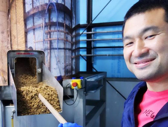 煮沸の合間にモルト粕を取り出す。一部は近隣の農家や農場で再利用される。サステナビリティ面もしっかりと考えられている。