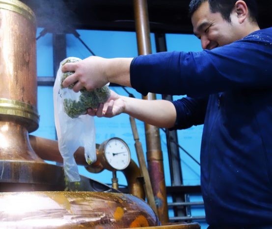 次はホップを投入。全部で3300gを数回に分けて投入(ドライホッピング用を含む)。測定時には部屋中に華やかなフローラルな香りに溢れ、ホッと一息。