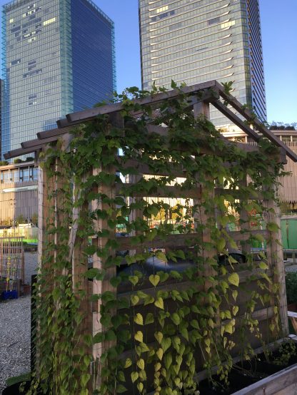 現在、JR大阪駅前を開発工事中の「うめきた2期」エリア。「うめきた楽市楽座」は事業者として選定された市民団体として、開発段階から「うめきた」の情報発信とPRをしている。今年度は、『うめきた村プロジェクト~地縁でつくる「かけはし」~』と題し、「都市に、農園やマルシェができる機能を持った公園がほしい」という独自調査で集めた市民の声を受け、市民一体となった公園の利活用における社会実験事業のイベント事業(マルシェ開催、多文化地域交流イベントなど)や都市農園事業を行っている。その一環として、今年5月からホップ栽培・収穫、仕込みを行い、12/9(土)にお披露目パーティーを開催する運びとなった。