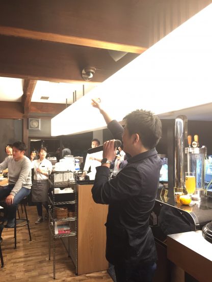 まずはSVB京都のヘッドブルワー三浦氏からのビールの説明の後、お店にいらしていたお客様にも振る舞いビールが配られ、皆さんと一緒に乾杯!!