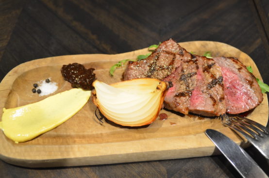 流行は嫌いじゃないのですが、なにせ妙齢のご婦人であらせられるワタクシ達、分厚いシカゴピザを二人で完食する覚悟が無く、二人とも肉食系女子ということもありますので(!)大喜びで黒毛和牛門崎熟成肉をチョイスしました。