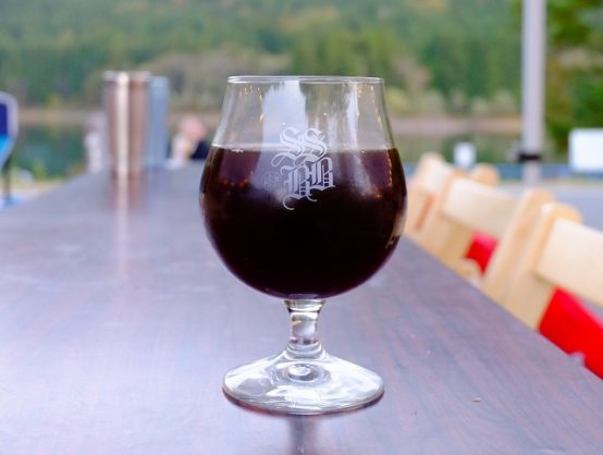山に囲まれた湖のほとりでのんびり自然を感じながらビールを味わうことができます。