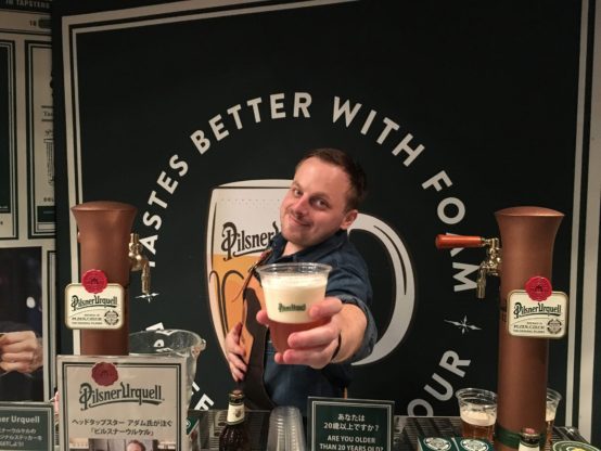 そんな、ピルスナーウルケルを提供するために、注ぎの技術の粋を極めているのが、ピルスナーウルケルが認めた「タップスター」です。今回は、そのタップスターを指導すべき存在である、ヘッドタップスターのアダム・ヴルチェック氏が、チェコフェスティバルのピルスナーウルケルのブースに立ち、ビールを提供してくれるのです。本場の注ぎの技術でピルスナーウルケルが楽しめる。なんという贅沢!