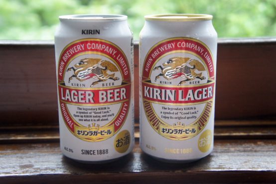 最初に気づくのは、麒麟の下の中央帯の表記が「LAGER BEER」から「KIRIN LAGER」へと変わったこと。それに伴い上部にあった黒の「KIRIN」が取れています。