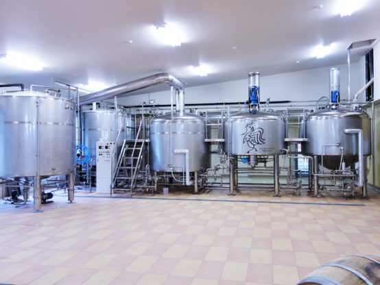 FYBでは1回に3000Lを仕込める醸造設備があります。最近は、もっと小規模の醸造設備で仕込む醸造所も多いので、小規模醸造所の中では大きい規模でつくっています。