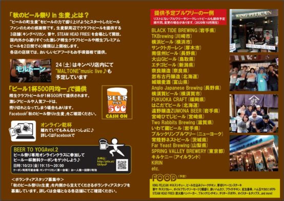 今年はキングペリカン、麥ヤ、スチームヘッドの3店舗にて開催されます。