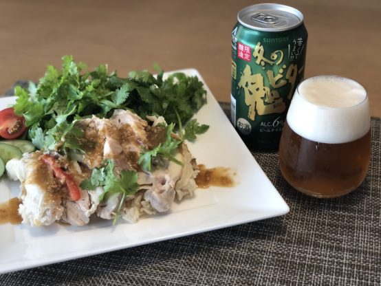 3つ目は、「パクチー山盛りのカオマンガイ」です。個性の強いパクチーにも負けない味わい。
