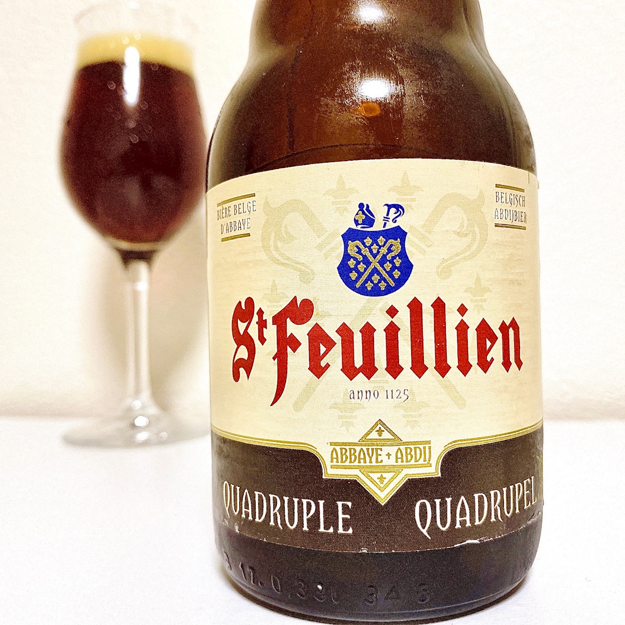 「St.Feuillien Quadruple」。見慣れない茶色のシックなデザインです。