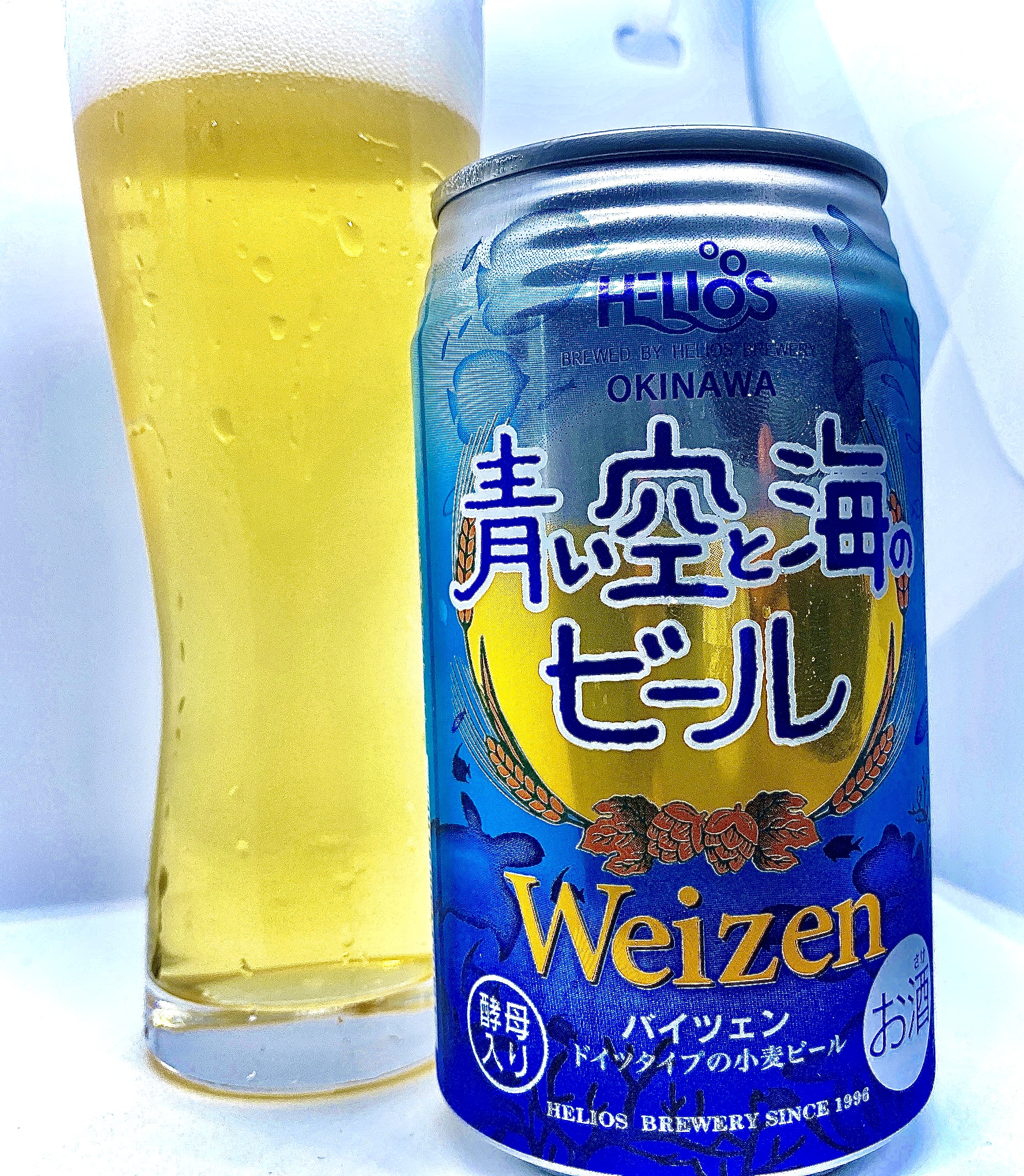 ヘリオス酒造株式会社「青い空と海のビール」。軽やかな味わいでするする飲めてしまいます。