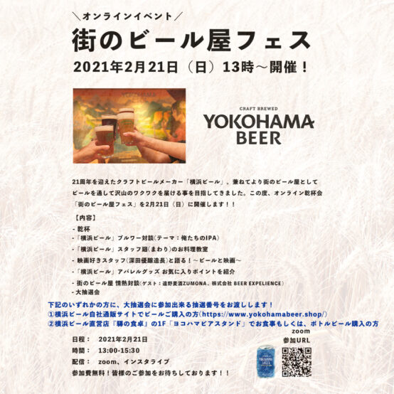 横浜ビールオンライン乾杯会『街のビール屋フェス』、2月21日開催!