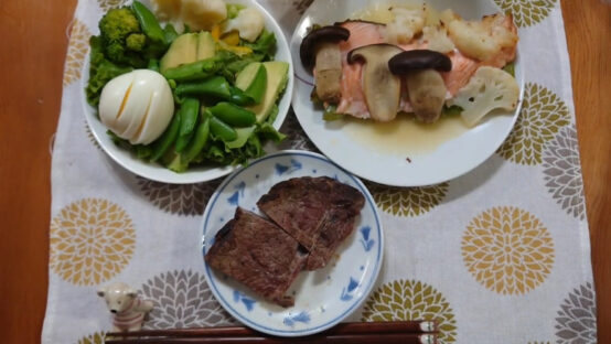 一週間、野菜(ただし、根菜や糖質の多いものはNG)をたっぷり、お肉やお魚などのタンパク質もしっかり、脂質は摂取カロリーの75%になるようにばっちり摂るという献立スケジュールはなかなかハードだったようです。