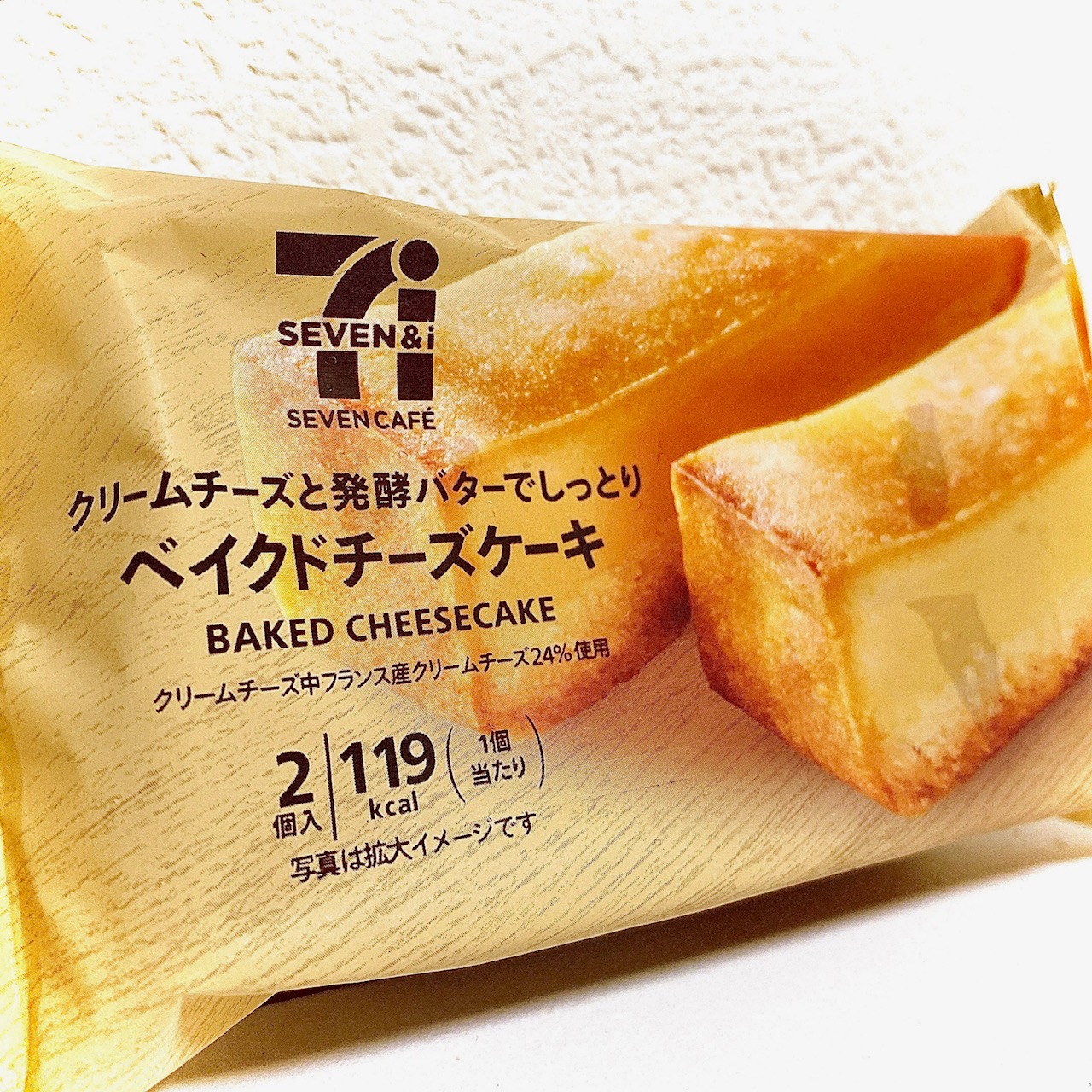 セブンイレブン「ベイクドチーズケーキ」をチョイス。ねっとりとした中にチーズの風味と酸味が広がります。