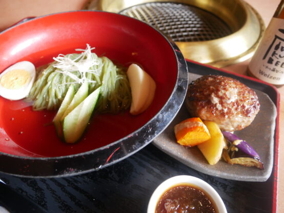 いわて蔵ビール(ヴァイツェン)+ひすい冷麺とハンバーグ
