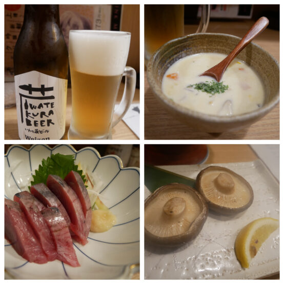 まずは歩いて回りやすい一ノ関駅周辺で、美味しいビールとともに名物のお料理や旬のおつまみなどをいただきました。