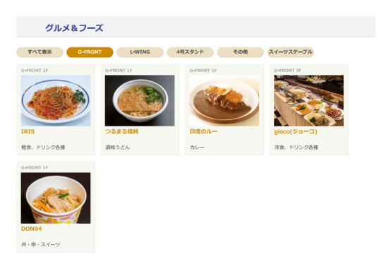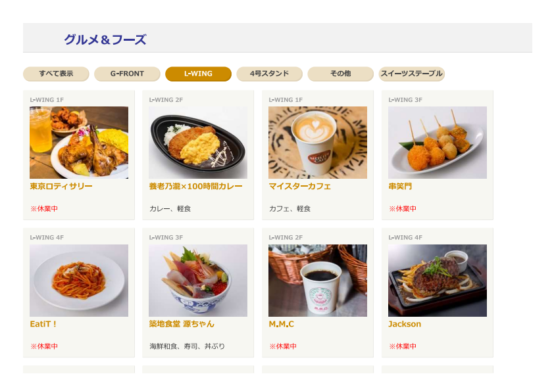 (※休業中の店舗もあるので、行く際には必ず公式サイト内の「グルメ&フーズ」で確認してください。)