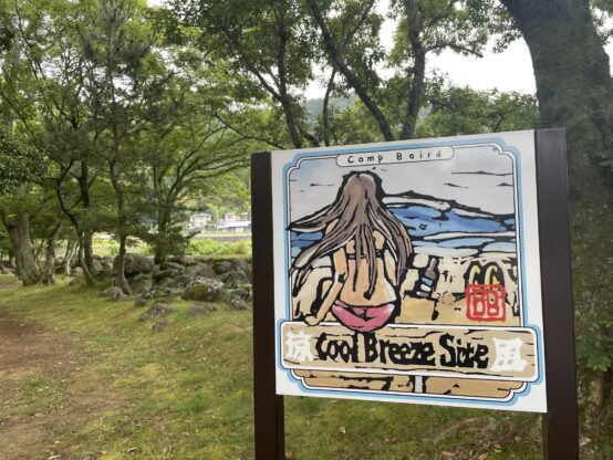 わたしたちが泊ったのは、フリーサイトの「クールブリーズサイト」。ベアードビール工場と狩野川に挟まれたサイトで、日差しを柔らかに遮るように木々が生えている場所だ。フリーサイトなのだけれど他のキャンパーさんとの距離はゆったりと取れるようになっており、トイレやシャワールームなども清潔。そしてそこかしこにベアードビールのロゴやデザインがセンスよく散りばめられていて、まさに「大人の遊び場」という感じだった。