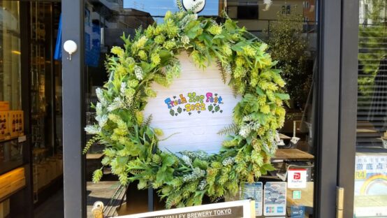 入口にはフレッシュホップフェストのロゴが中心に描かれたホップのリースが飾られており、参加者を出迎えてくれました。