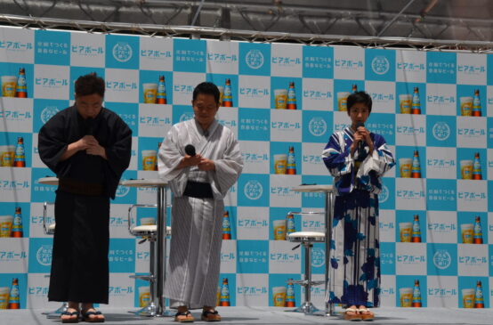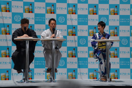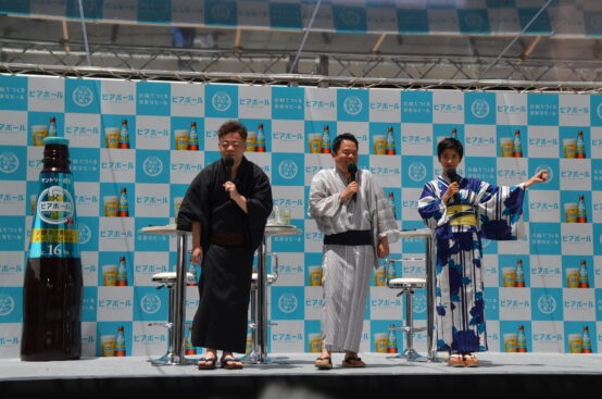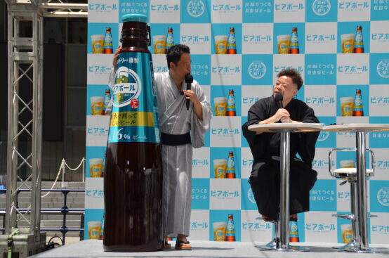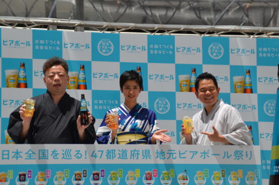 ビアボールのCMタレントでもある女優の黒島結菜さん、イベントを盛り上げるためにお笑い芸人のダイアンの津田篤宏さん・ユースケさんが登場!