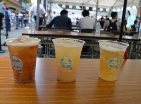 普段、ビールばかり飲むので、たまに居酒屋などで味わうアセロラサワーなどは、少し物足りなさを感じてしまうことが多いのですが、こちらの地元ビアボールである沖縄アセロラビアボールは、アセロラの爽やかさにビールのほんのりした苦みが加わり、16%のビールで割っているので、味わいに厚みと奥行きが感じられます。しかも、これは推測ですが、このイベントでは、とてもおいしいアセロラジュースを使用しているのではないでしょうか。