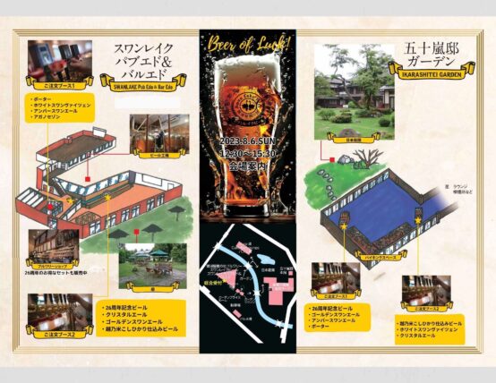 26周年記念ビールは令和5年8月11日より樽、ビン共に販売開始となります。数量限定ですので無くなり次第終了となります。なお、8月6日に久しぶりに開催されるスワンレイク周年感謝祭にて一足早くお披露目になります。参加される皆さまは一緒に乾杯をしましょう!!