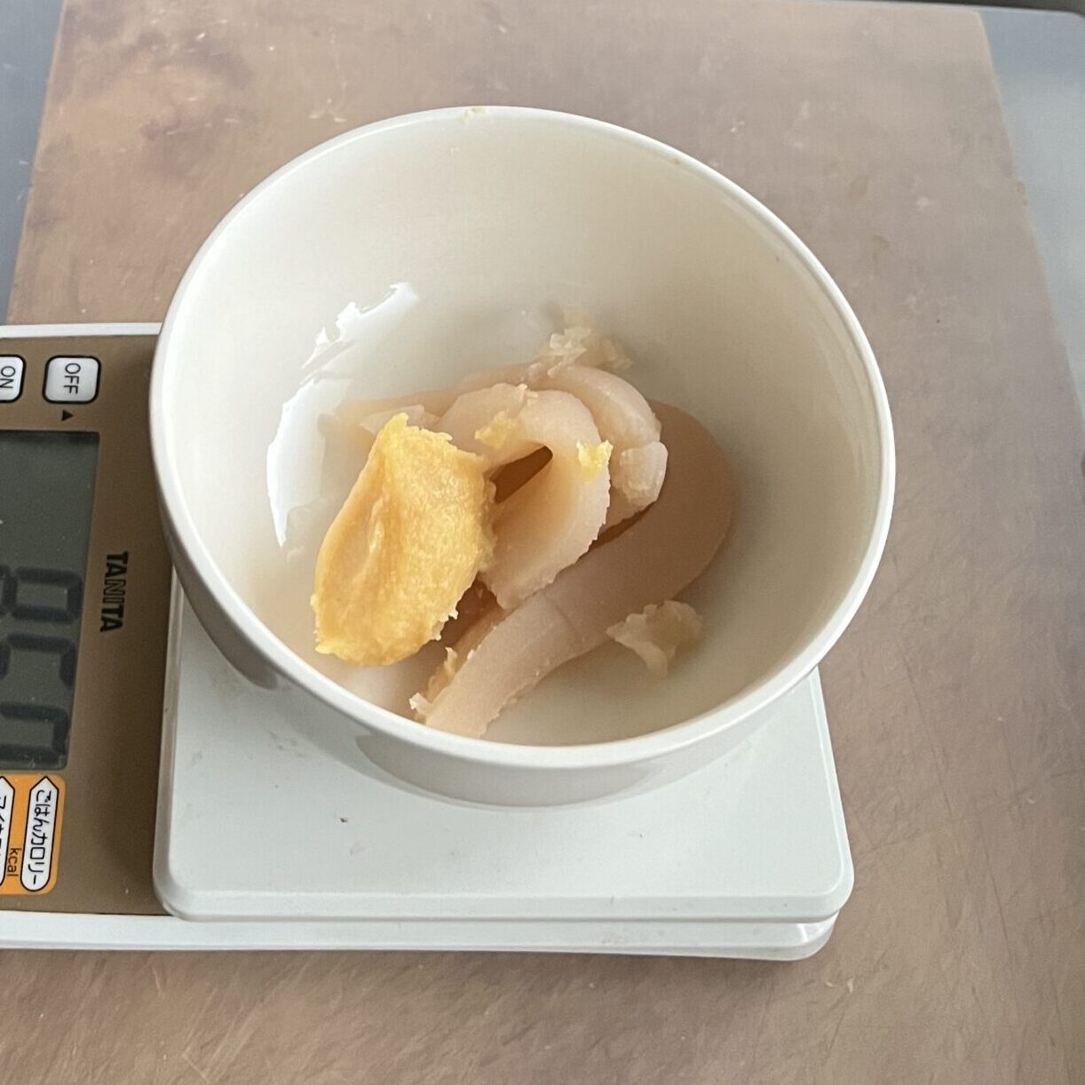 - 容器にラップをかけ、600wの電子レンジで1分半加熱する。