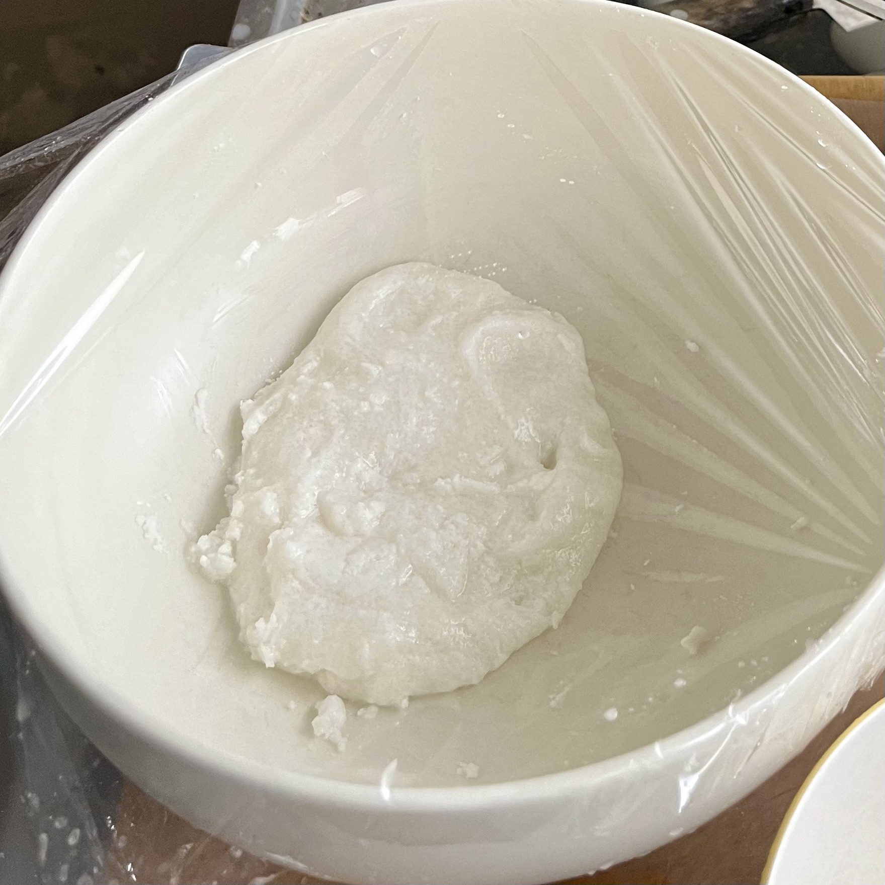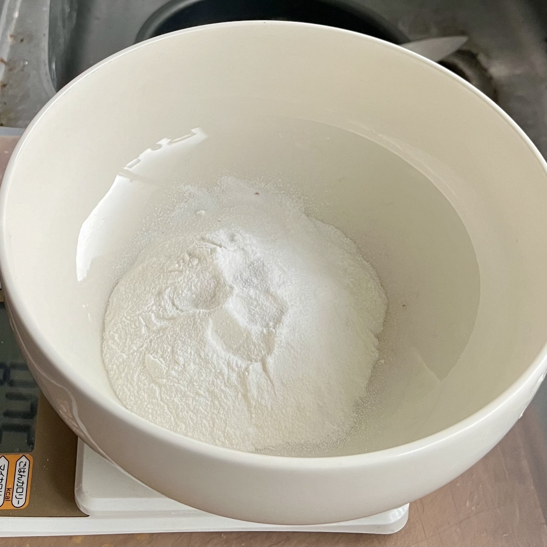 - <餅生地>レンジ加熱可の容器に上新粉を入れ、分量より控えめの水を加えよく混ぜる。まとまりづらい場合は水を少しずつ加えますが、この後砂糖を加えるとまとまるので、だいたいひとまとまりになればよいです。