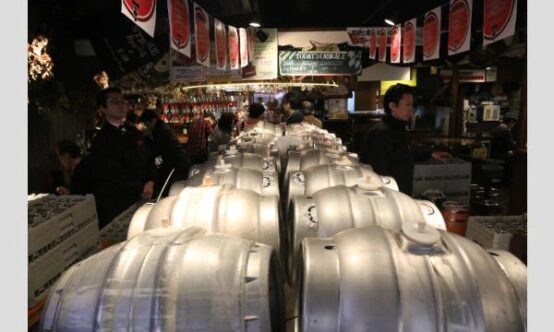 アルコール度数低めで、炭酸も柔らかで優しい口当たり、まるで英国紳士のようなビールが20種類以上楽しめます。カスクがずらりと店内に並ぶ様子は壮観。イギリス直輸入のものから、新宿にある英国式パブ「ハイバリー」からのリアルエールも並びます。入場制限があるので、飲んでみたい方は早めにチケット予約を!