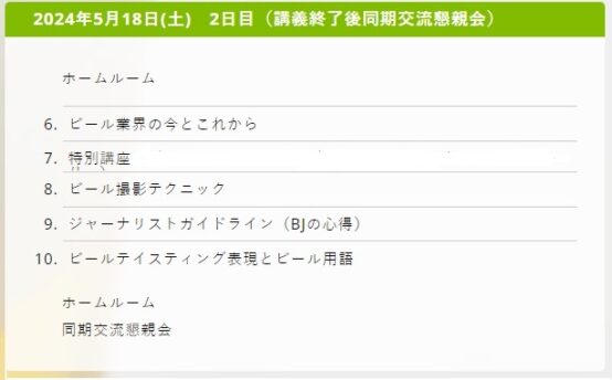はじめのうちは、藤原ヒロユキ代表が1人で講師をしていたBJAですが、3期・4期と続くうちに、専門家やプロの講師が入り、私が受講する5期の頃には1期生が講師として檀上に立ち、雑誌やウェブでビアジャーナリストとして活躍するプロとして、指導に当たってくれました。