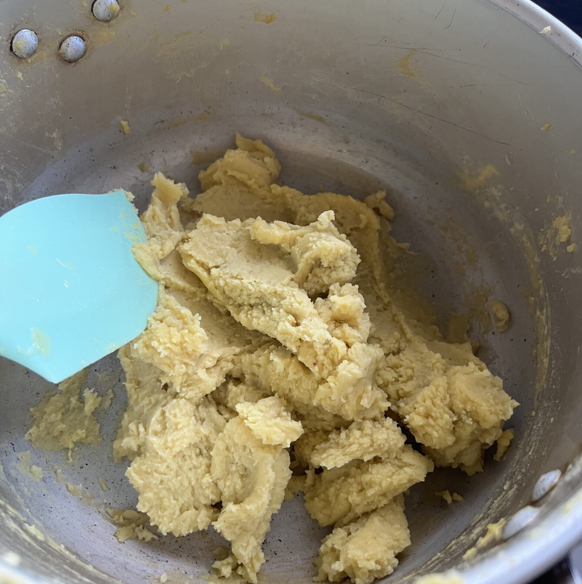 - 水を加え練りあげる。水の分量はお好みで調節してください。