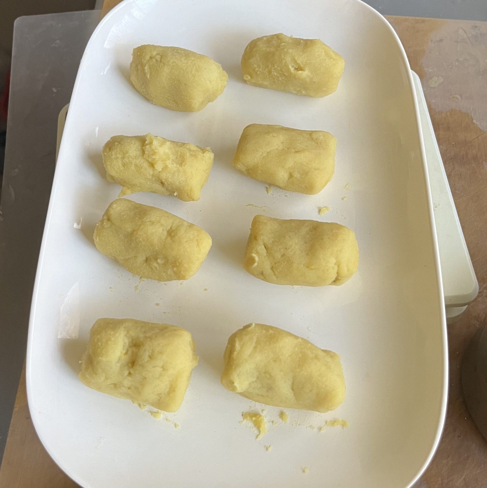(さつまいも餡)皮をむいたさつまいも約160g、砂糖16g(さつまいも重量の10%)、卵黄2個分、水50ml