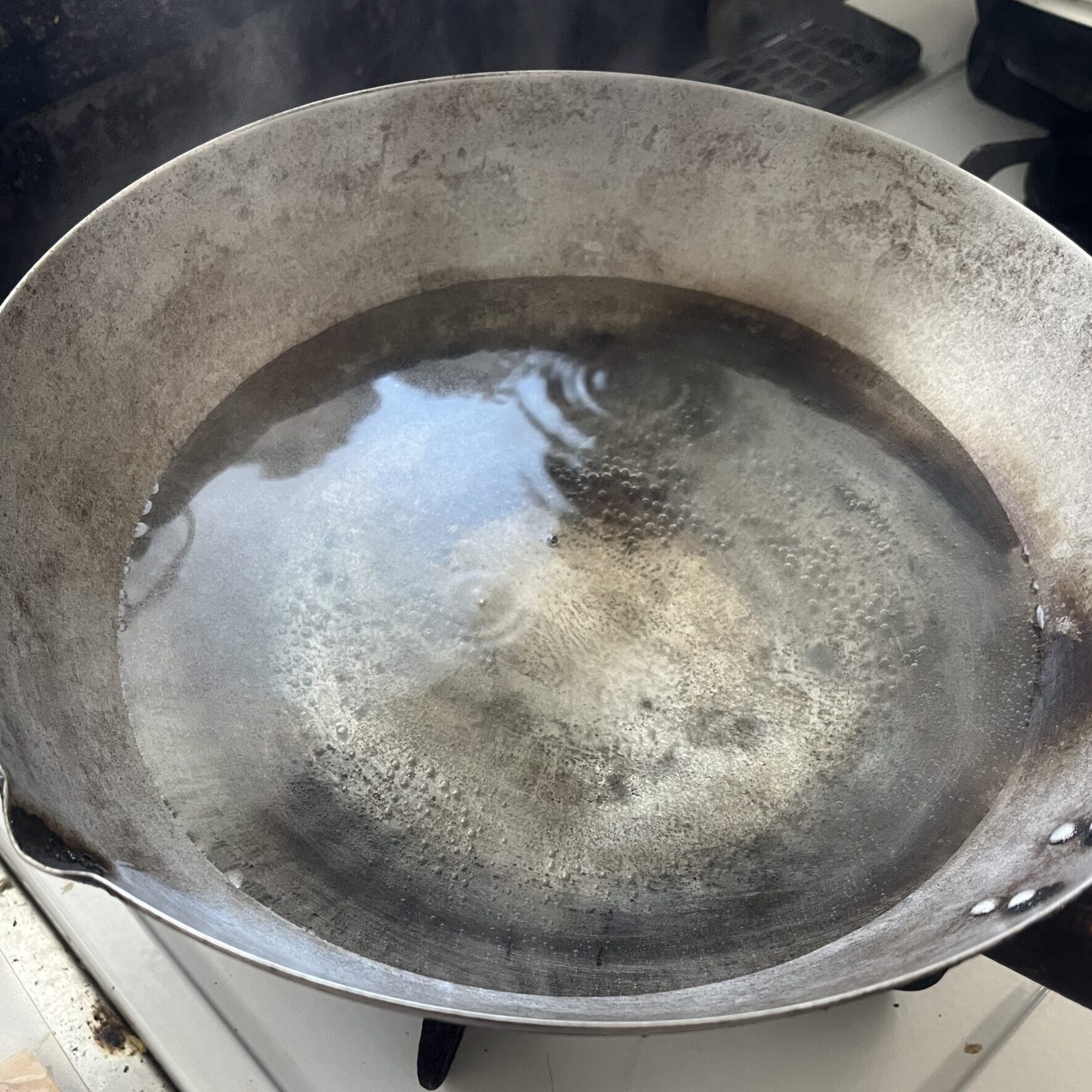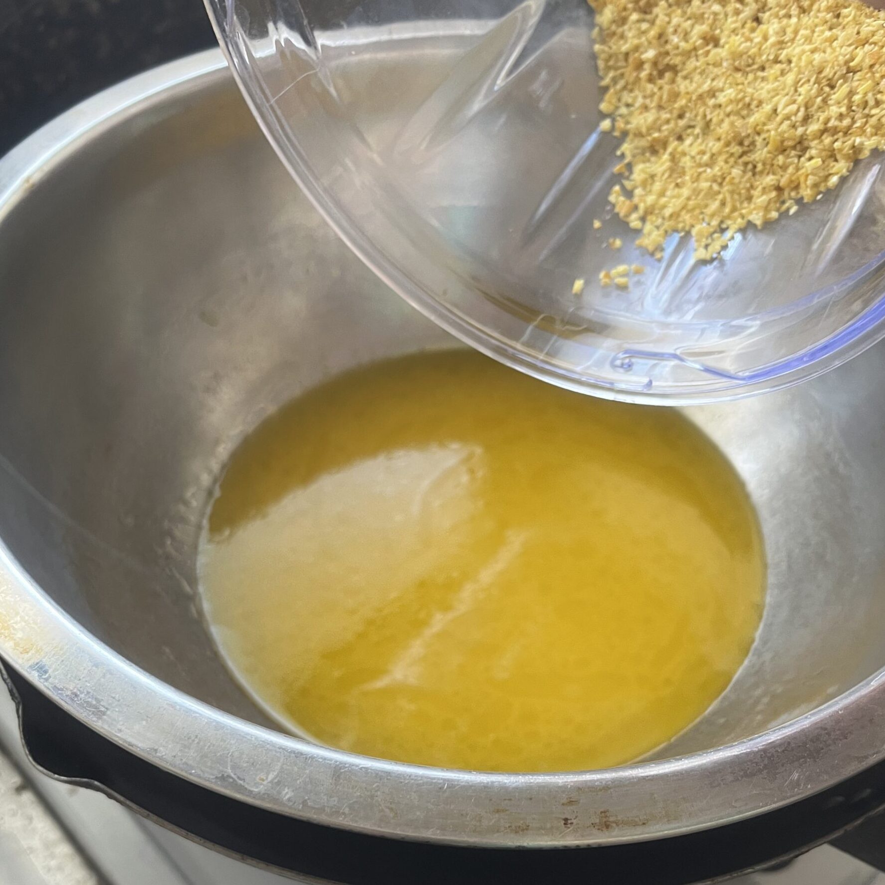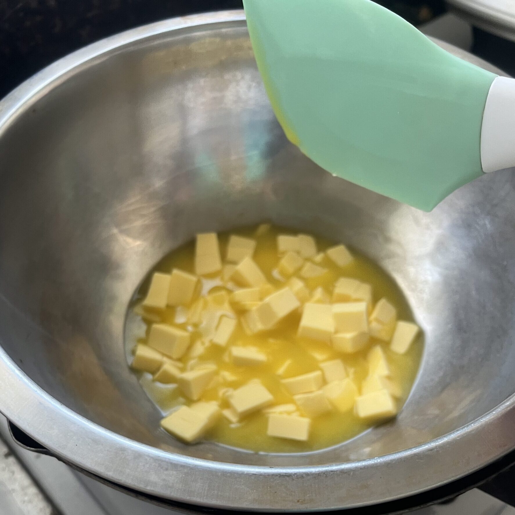 - フライパンにお湯を沸かし、湯煎でバターを溶かす。