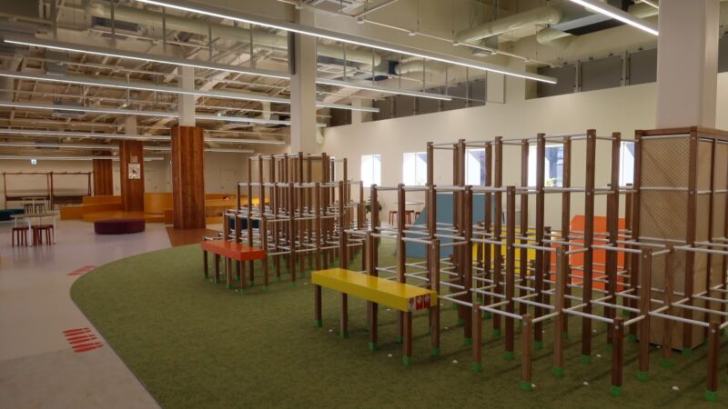 建物の2階には、「屋内交流スペース」と称して、子供用の遊具などがあります。長距離ドライブに飽きてしまった子供たちが気分転換できる、子供連れの家族にはうれしい設備です。